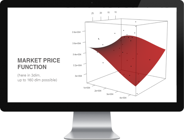 Due to the multifold complexity of market price influences (e.g. vehicle specification in-cluding optional equipment, region, color, age, mileage, life cycle... etc.), we use high-end mathematical technologies (e.g. multivariate regressional tech., neural networks) for our solution.